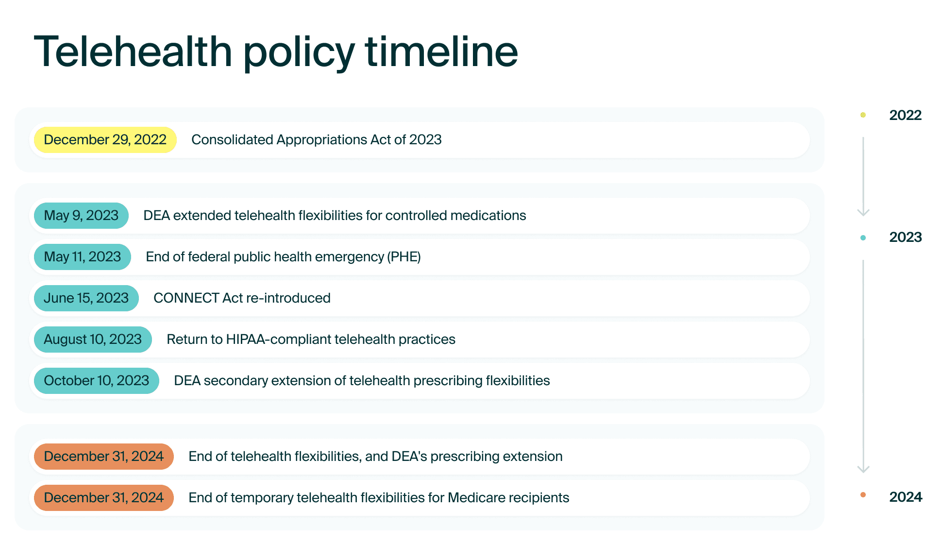 Telehealth policy timeline from 2022 to 2024